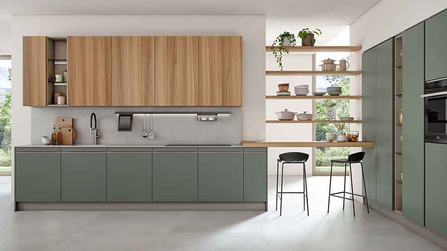 Con Lube puoi personalizzare ogni dettaglio: dalla disposizione degli elementi alla scelta delle finiture, dai piani di lavoro alle maniglie.